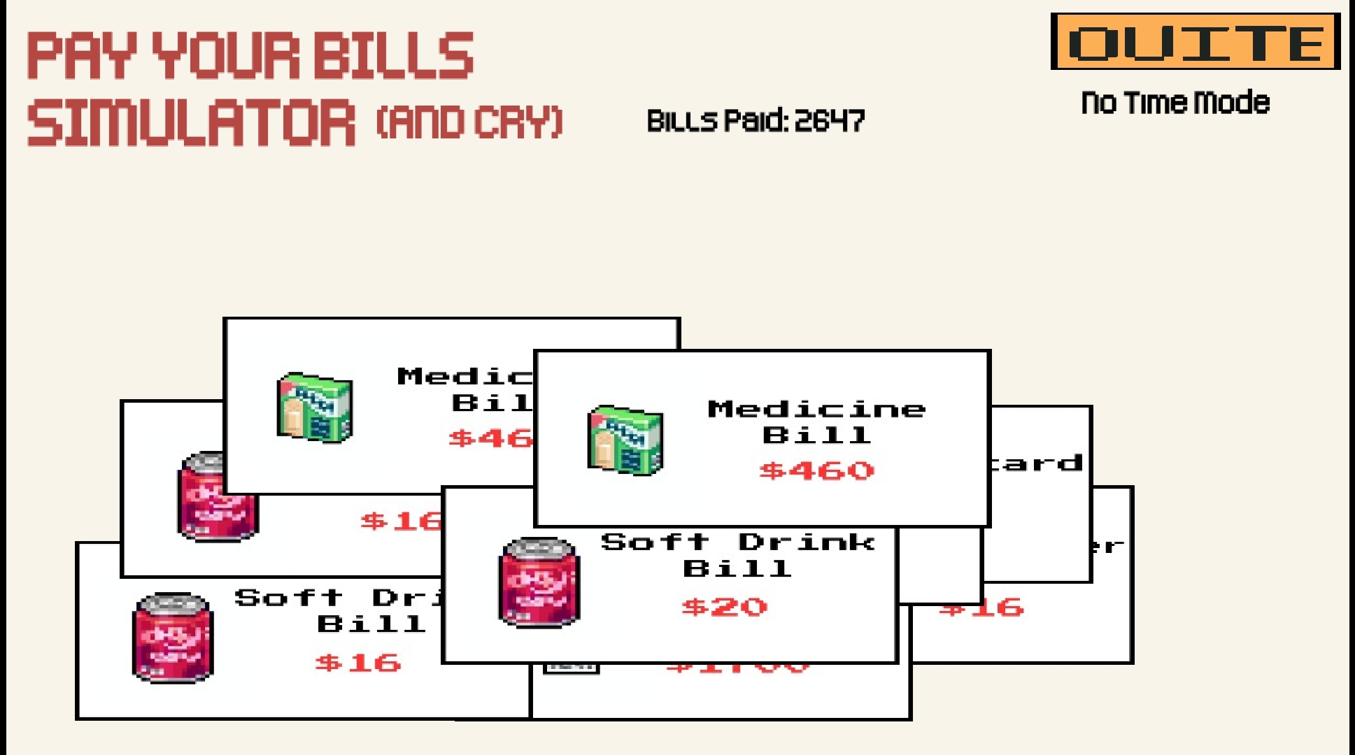 •Silly random bills that pile up like real life